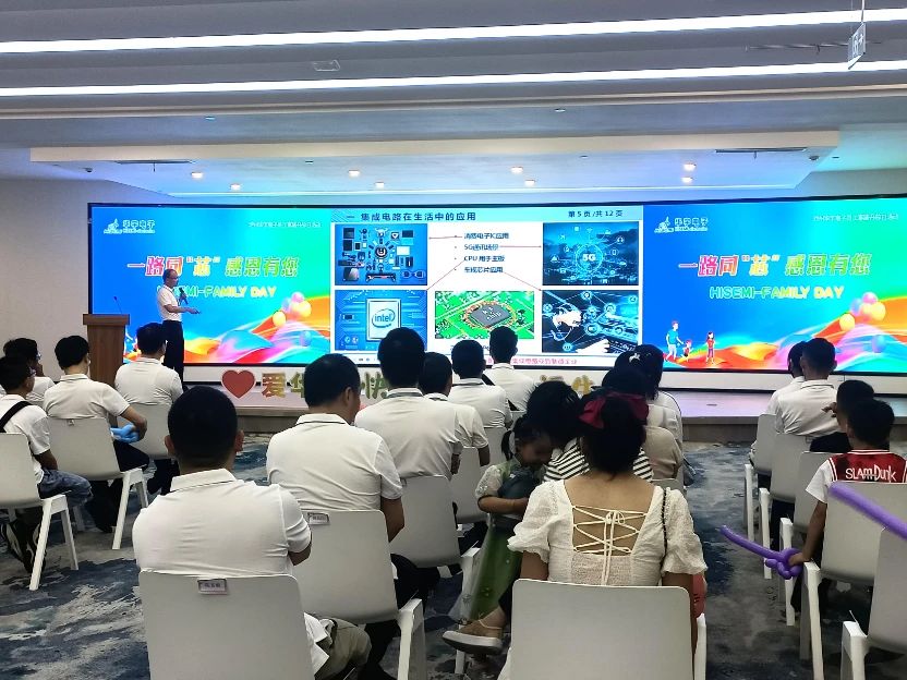 隨后,華宇電子研發(fā)部高級經(jīng)理王釗向家人們作半導(dǎo)體知識科普,為了讓孩子更加清晰了解什么是半導(dǎo)體,王經(jīng)理以身邊常用的電子設(shè)備為例,勾起了孩子們的興趣。他們認真聆聽,時不時與家長互動溝通,一片幸福祥和景象。